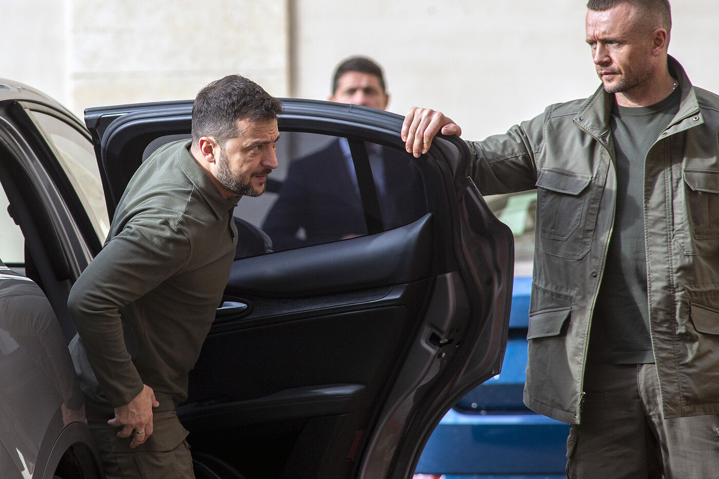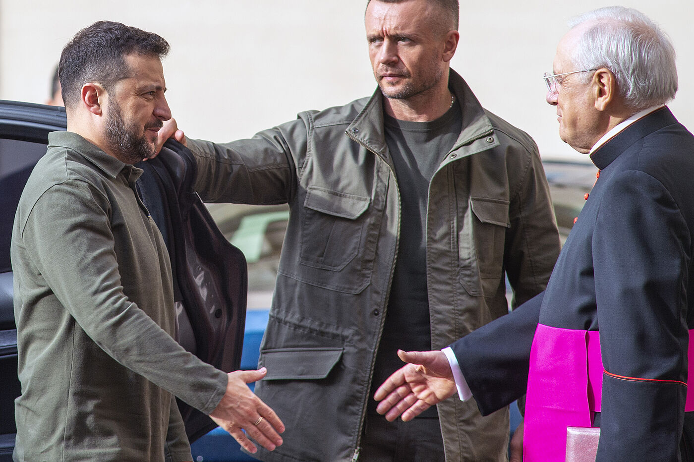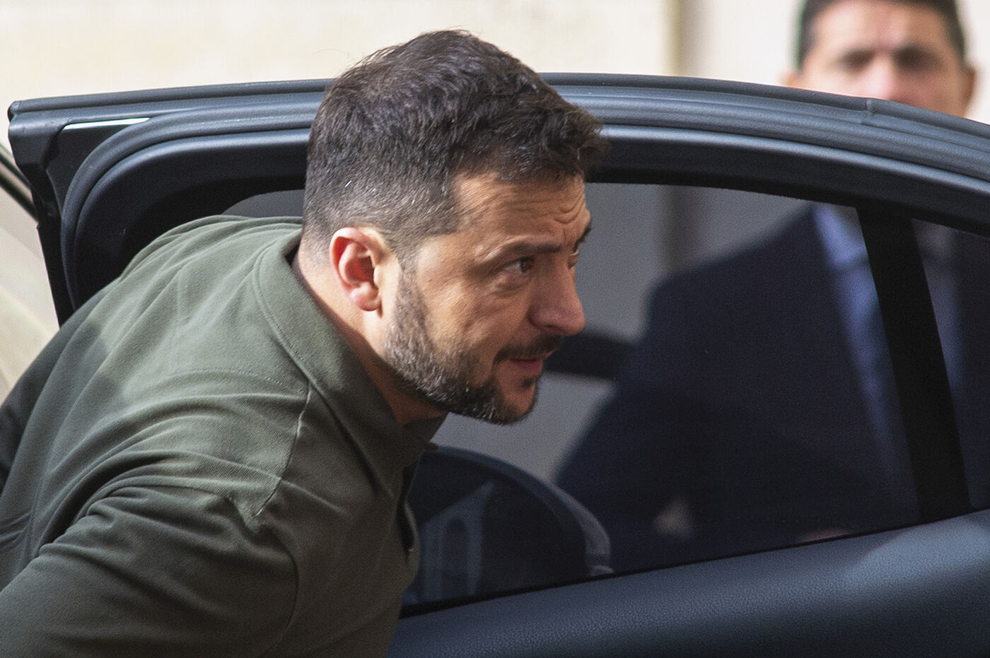 Ukrainian President Volodymyr Zelensky leaves after a private audience with Pope Francis