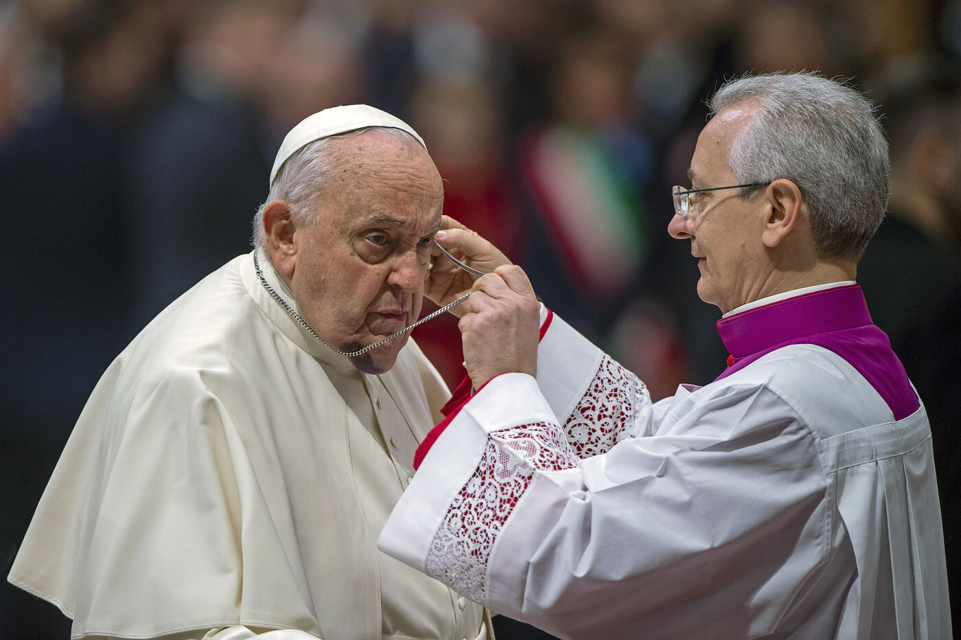 Pope Francis presides over a solemn mass opening a public concistory in St. Peter's Basilica at The Vatican, where he elevated 21 new cardinals in Vatican, 2024/12/7.