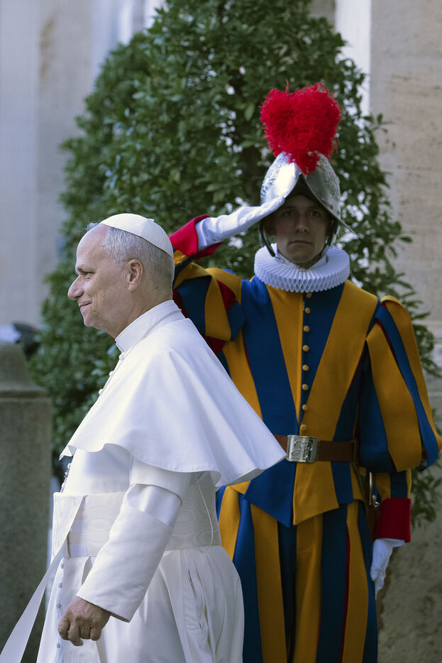 Le pape Leon XIV assiste a la ceremonie d'assermentation de 27 cadets de la Garde suisse pontificale