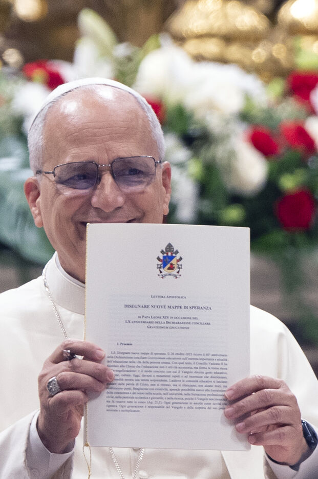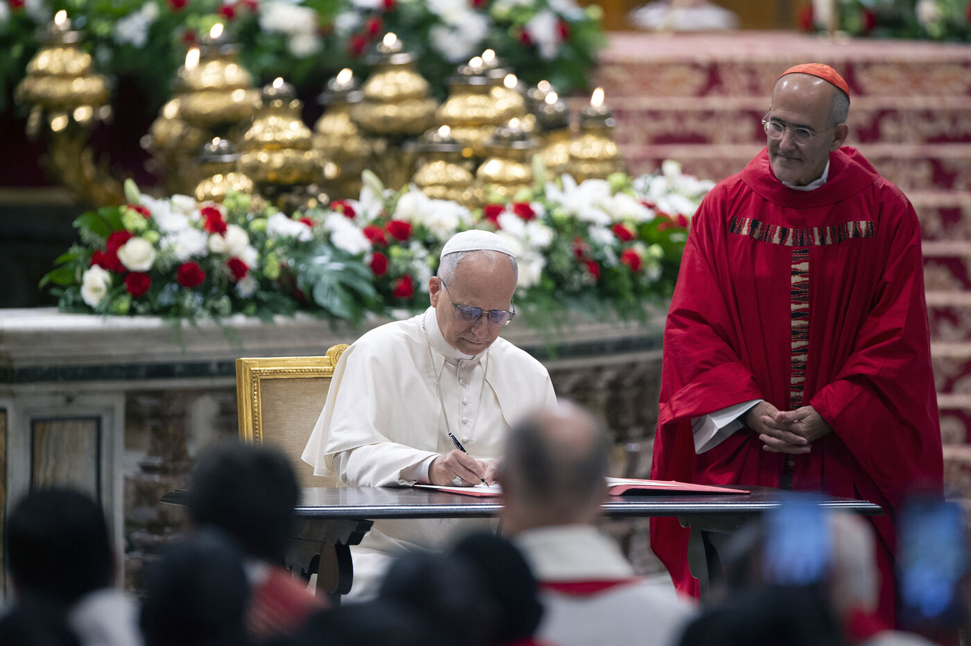 Pope Leo XIV celebrates a Mass for the opening of the academic year of the Pontifical University and for the Jubilee of the Educational World in St. Peter's Basilica at the Vatican on 2025/10/27.