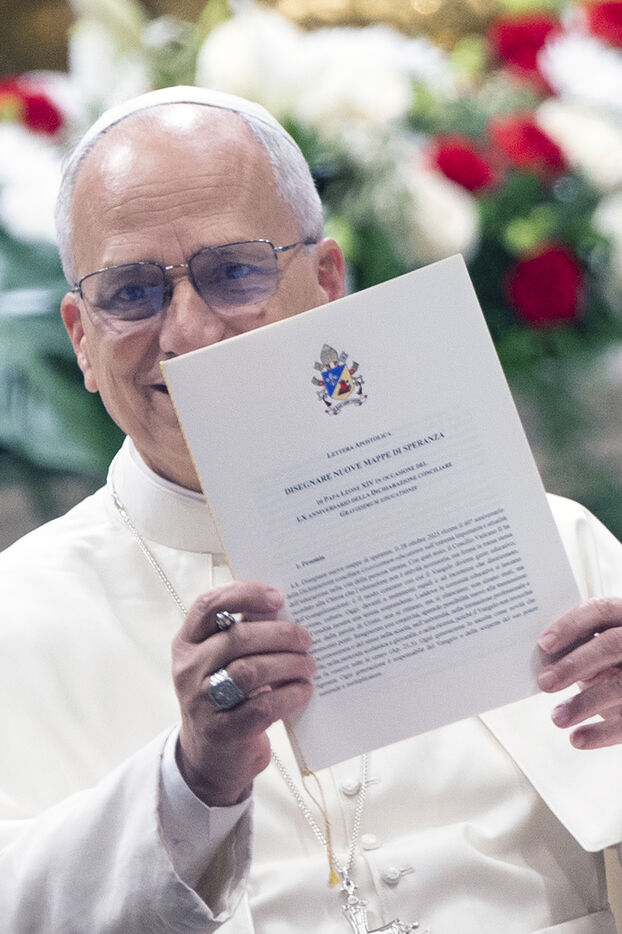 Le pape Léon XIV célèbre une messe pour l'ouverture de l'année universitaire de l'Université pontificale et pour le Jubilé du monde éducatif dans la basilique Saint-Pierre au Vatican, le 27 octobre 2025.