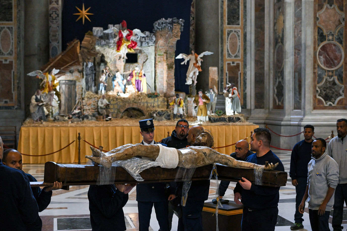 Pope Leo XIV celebrates a Mass on the occasion of the Jubilee of Prisoners in St. Peter's Basilica at the Vatican on 2025/12/14.