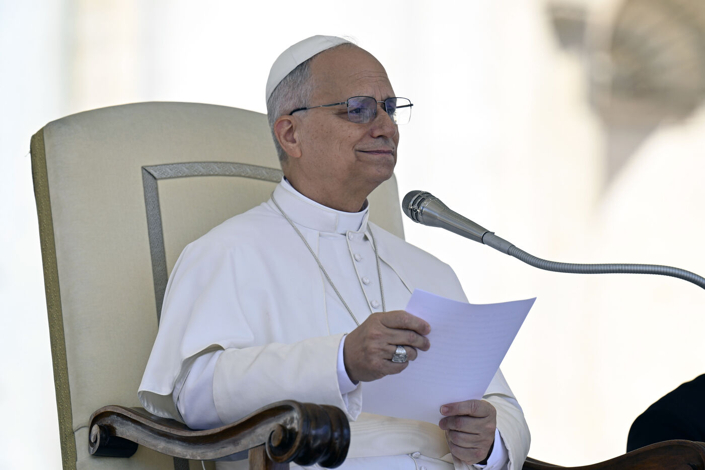 Le pape Léon XIV tient son audience générale hebdomadaire sur la place Saint-Pierre, au Vatican, le 2025/9/3.