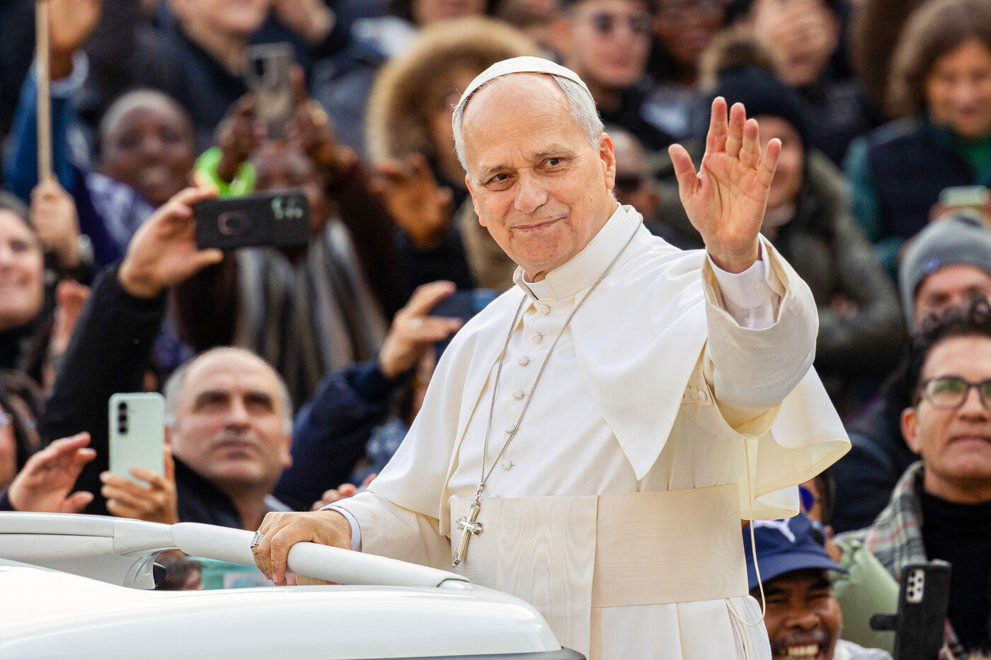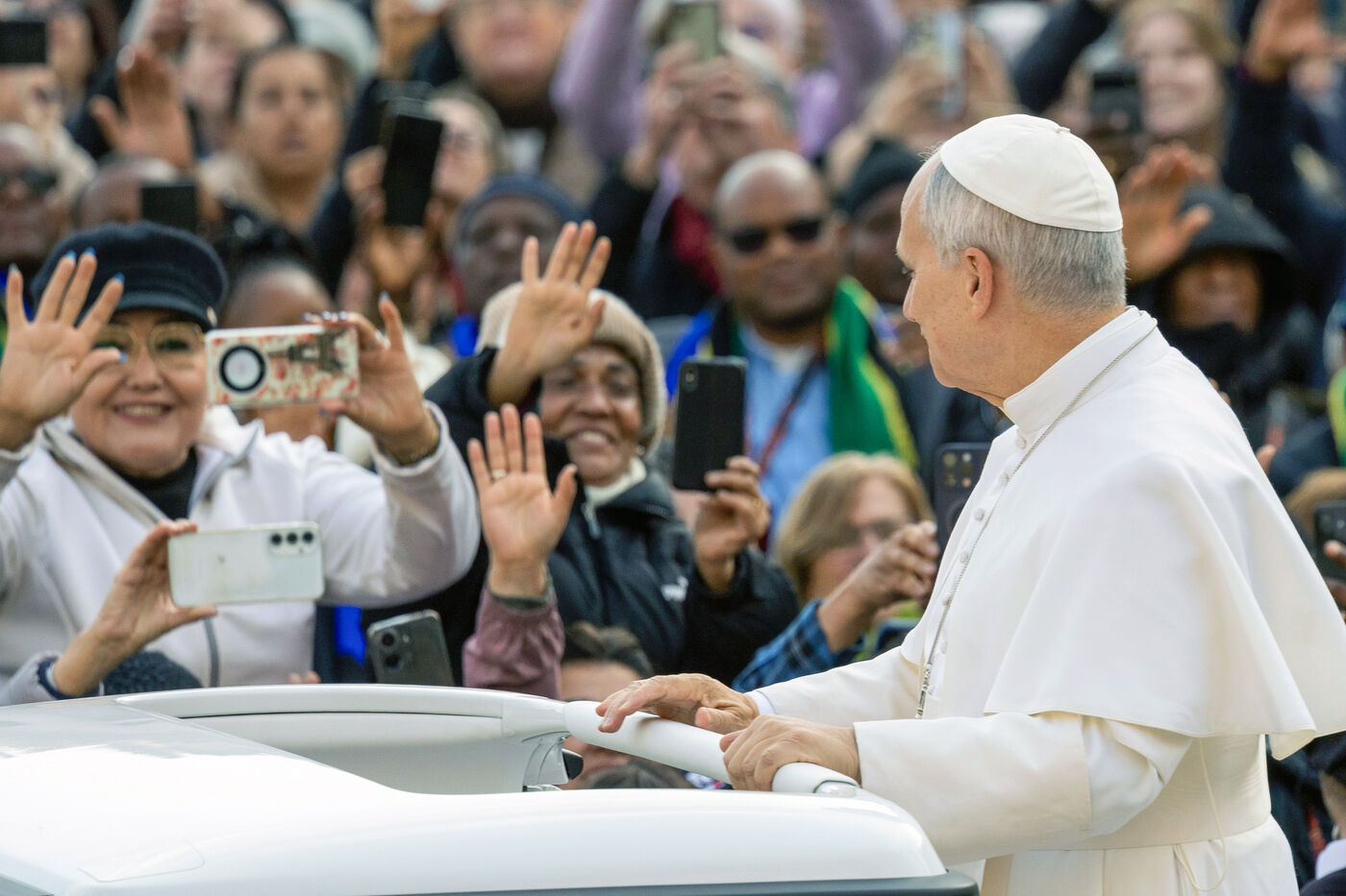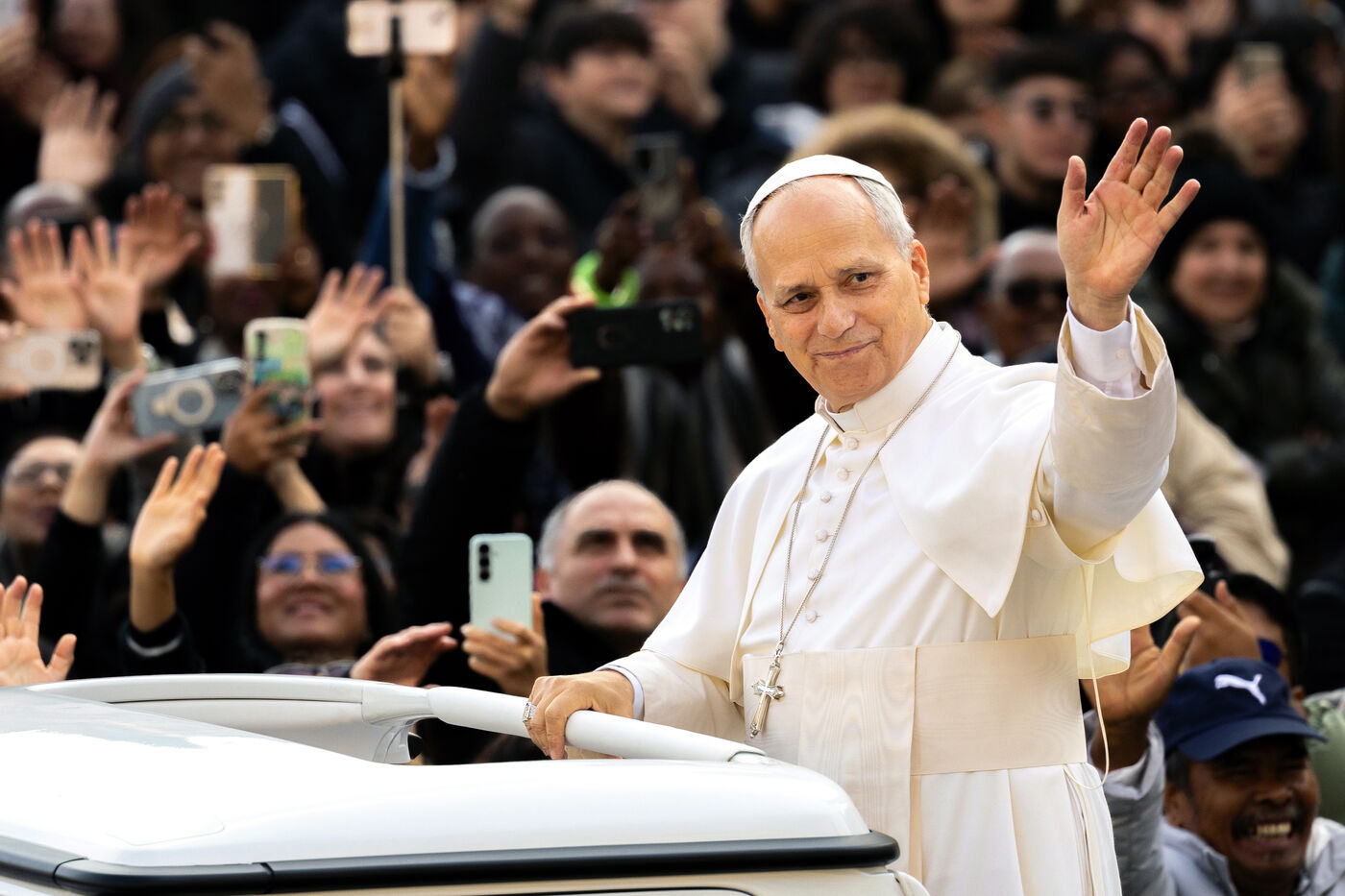 Le pape Léon XIV lors de son audience générale hebdomadaire sur la place Saint-Pierre au Vatican, le 17 décembre 2025.
