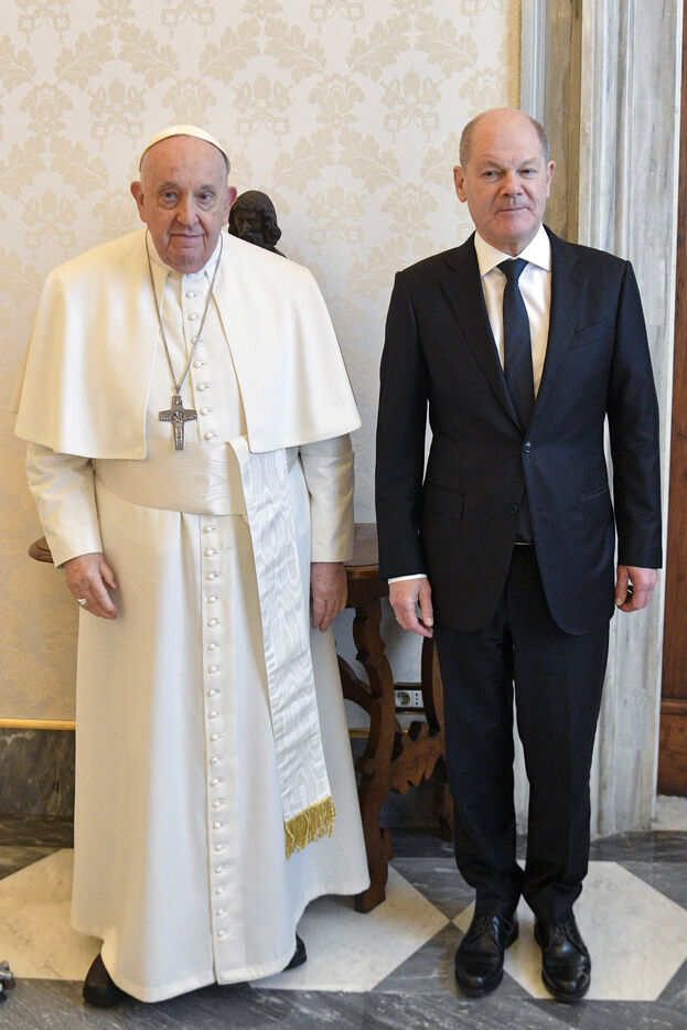 Italy, Rome, Vatican, 2024/3/2. Pope Francis receives in private audience Mr. Olaf Scholz, Chancellor of the Federal Republic of Germany at the Vatican.