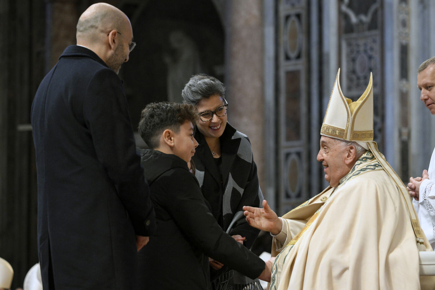 Pope Francis presides over a mass in St. Peter's Basilica with the 21 new cardinals he made on Saturday during a public concistory in Vatican on Sunday, Dec. 8, 2024.