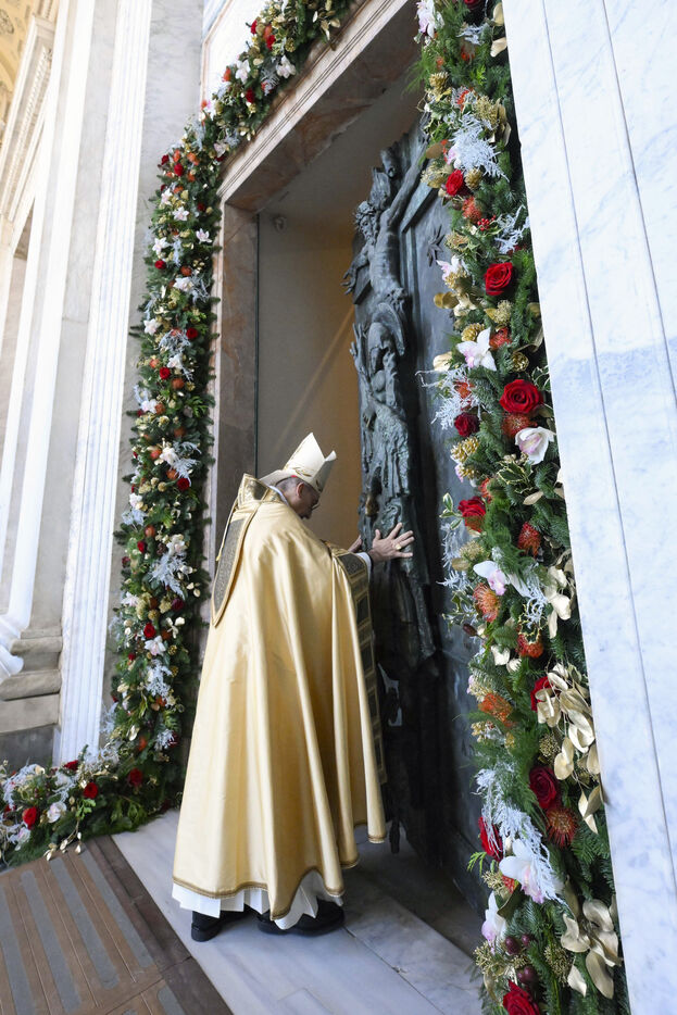 Cardinal Baldassare Reina opens the Holy Door of Rome's St. John in Lateran Basilica