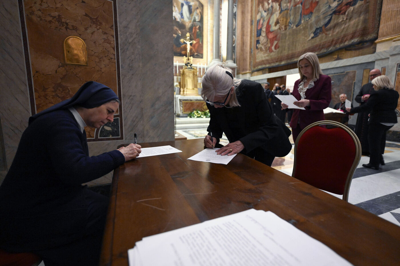 Serment des officiels et des participants au Conclave au Vatican le 2025/5/6. Photographie de VATICAN MEDIA / CPP / HANS LUCAS.