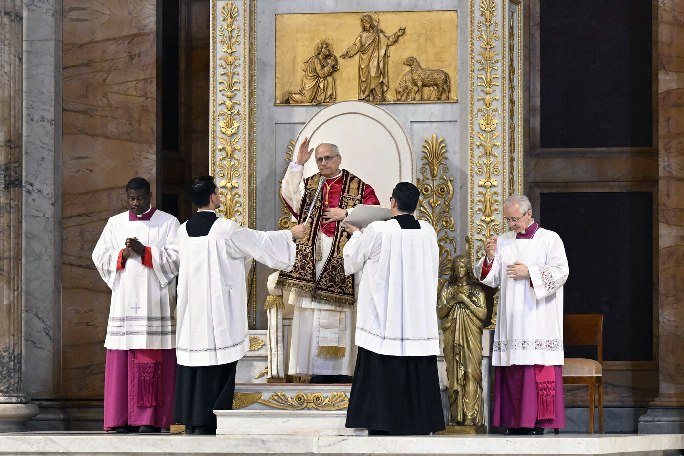 Pope Leo XIV visits the Tomb of St. Paul at the Basilica of Saint Paul outside the Walls in Rome in Italy on 2025/5/20.