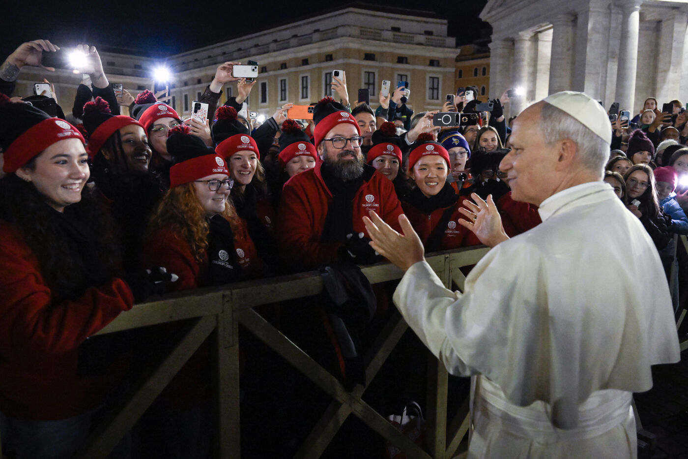 Le pape Léon XIV après un moment de prière devant la crèche qui orne la place Saint-Pierre au Vatican, le 31 décembre 2025.