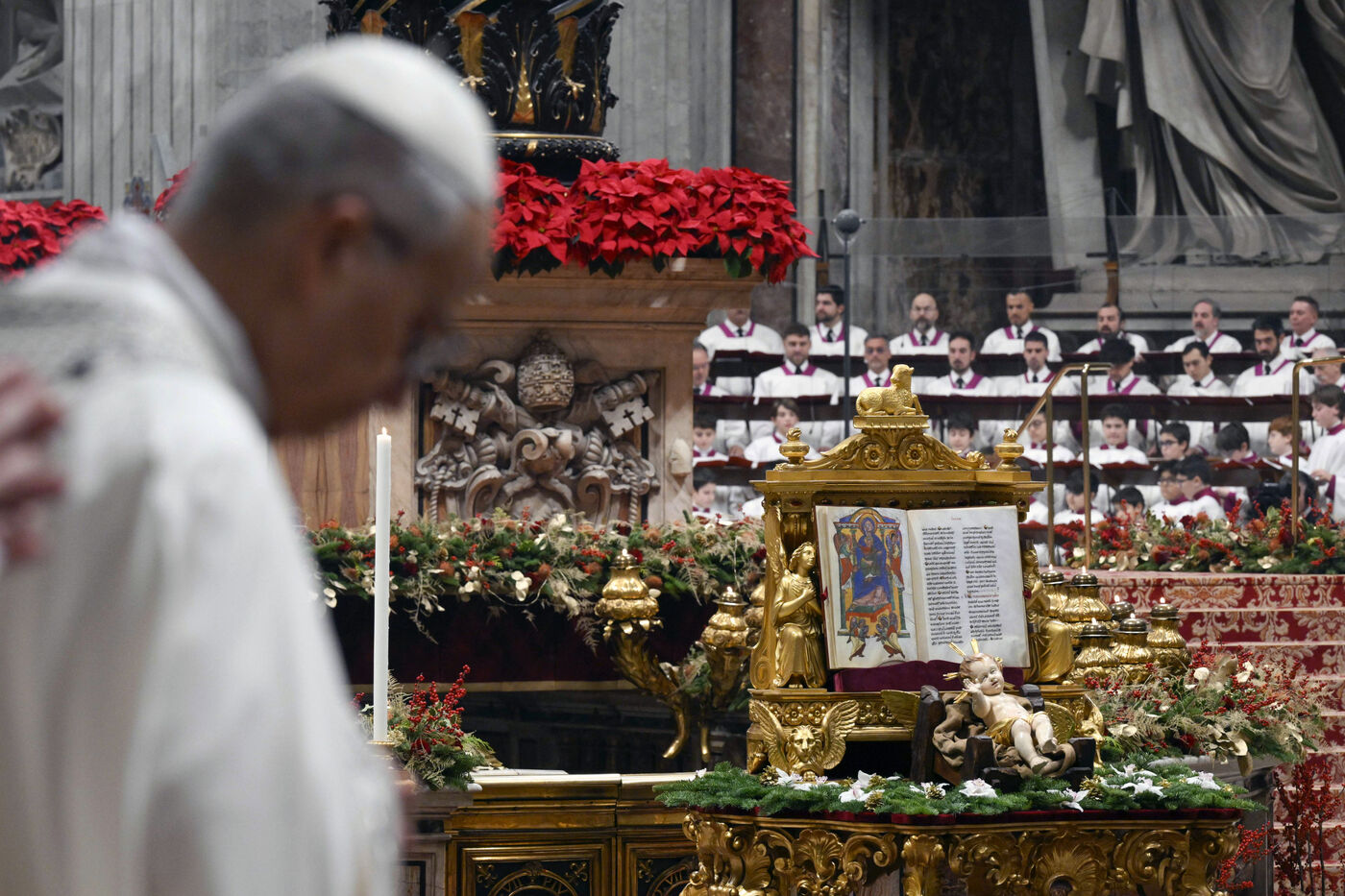 Le pape Léon XIV arrive pour présider les premières vêpres et le « Te Deum » dans la basilique Saint-Pierre au Vatican, le 31 décembre 2025.