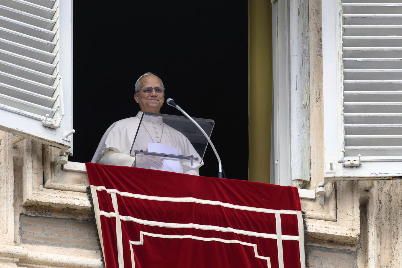 Pope Leo XIV leads the Angelus prayer, the traditional Sunday prayer, from the window of his office overlooking Saint Peter's Square in Vatican on 2026/1/04.