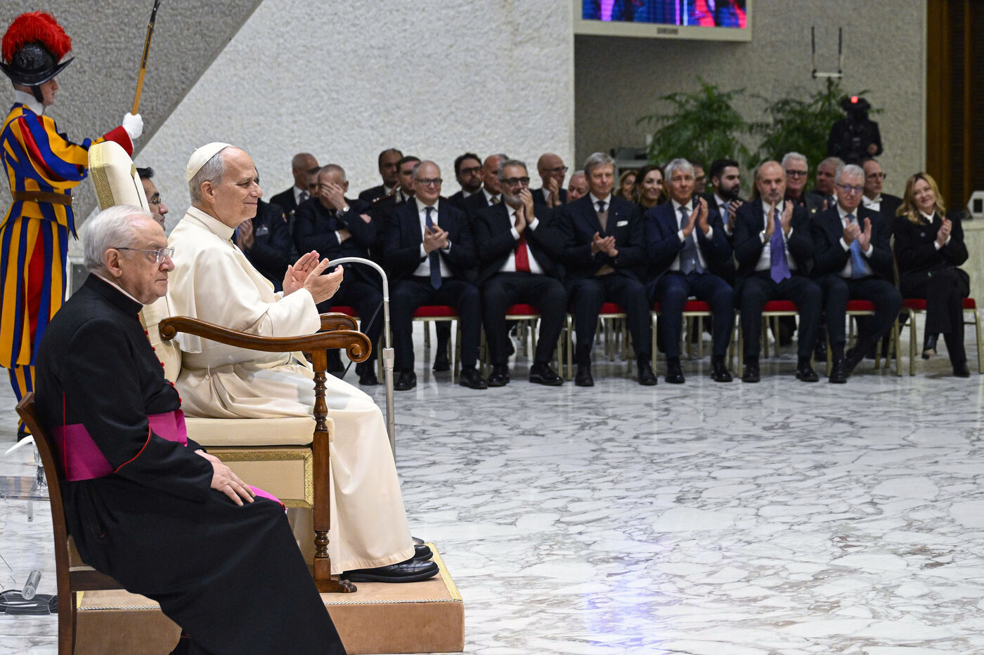 Le pape Léon XIV lors d'une audience spéciale pour les bénévoles du Jubilé, salle Paul VI au Vatican, le 10 janvier 2026.