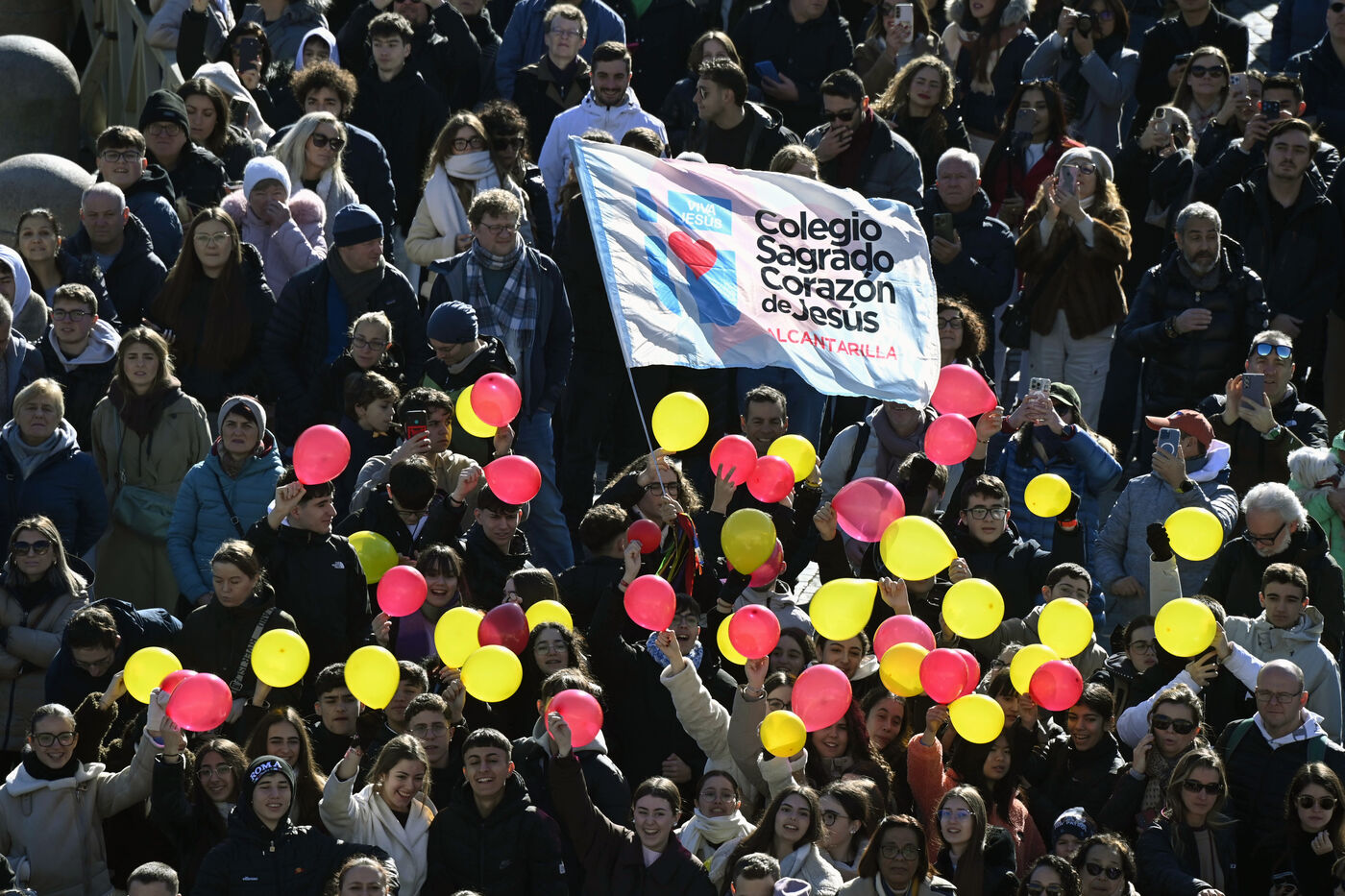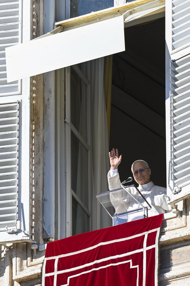Pope Leo XIV appears at the window of his studio overlooking St. Peter's Square in the Vatican on 11 January 2026. Before reciting the Angelus prayer, he shared his thoughts on the meaning of Jesus' baptism with the faithful.