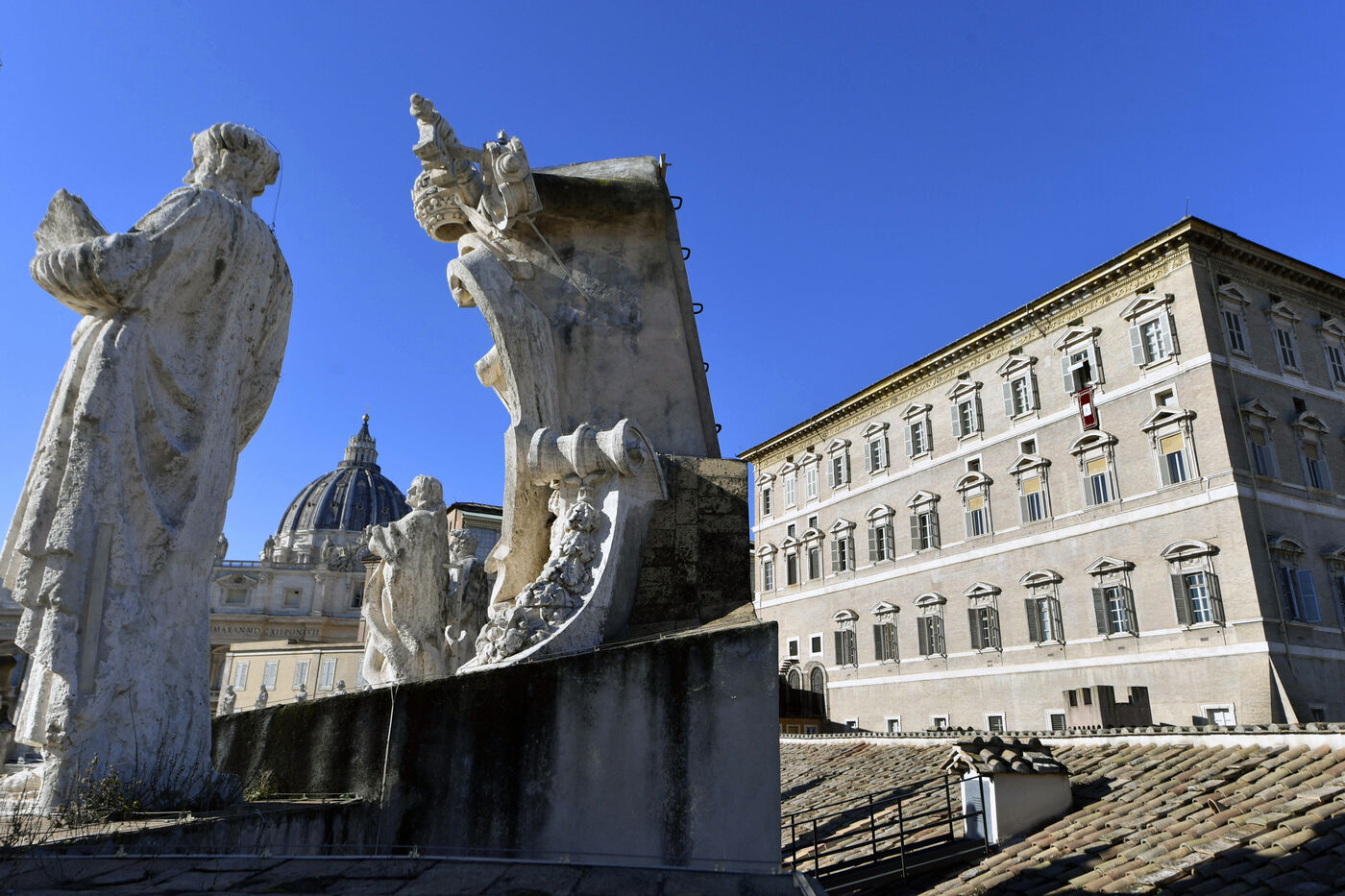 Le pape Léon XIV apparaît à la fenêtre de son studio donnant sur la place Saint-Pierre au Vatican le 11 janvier 2026. Avant de réciter la prière de l'Angélus, il a partagé aux fidèles sa réflexion sur le sens du baptême de Jésus.