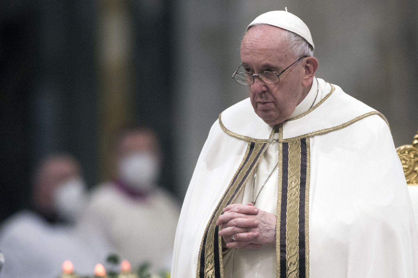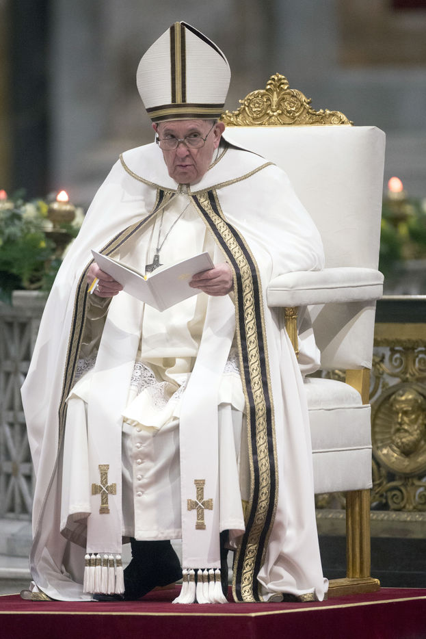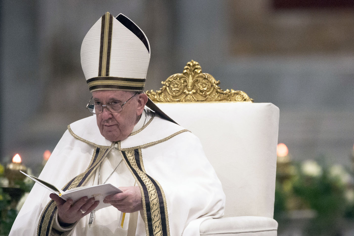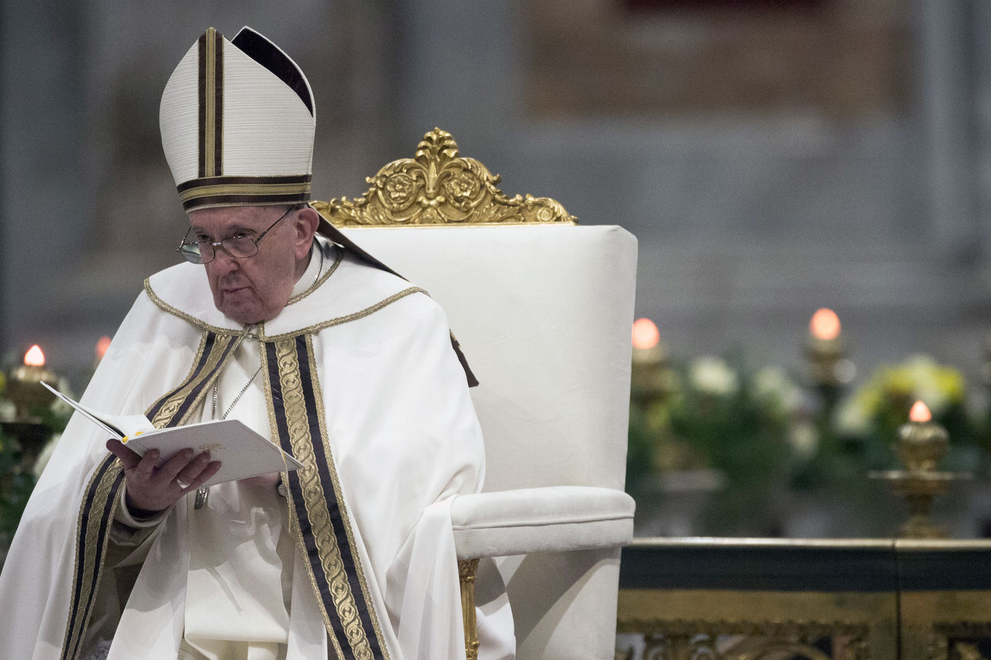 Pope Francis during the vespers in the Roman Basilica of Saint Paul Outside the Walls